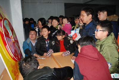 今年的“元宵游園”節(jié)目豐富多彩,有猜謎語、投飛標(biāo)、吹乒乓球、摸彩球、拼成語等,這些活動(dòng)全部由各分工會(huì)設(shè)計(jì)、承辦。今年的獎(jiǎng)品豐富,有微波爐、電飯煲、羊毛被、四件套等等。雖然都是小節(jié)目,但每個(gè)節(jié)目都有小禮品贈(zèng)送,大大增強(qiáng)了員工的參與積極性,特別是許多員工帶著孩子共同參與,現(xiàn)場上演著一場場“親子秀”,每個(gè)人的臉上都洋溢著笑容。