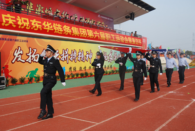 集團黨委書記、工會主席魯小林致開幕辭。他說,回顧東華創建24周年的歷程,在宣碧華董事長的領導下,企業取得了長足的發展和可喜的成績。舉辦本次運動會,將集中檢閱我們廣大職工參與的體育運動的新成就,各部門交流開展群眾體育活動的新經驗,促進我們的職工體育競技邁上新臺階,達到新水平。