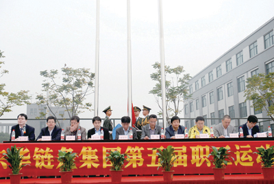 本屆運(yùn)動(dòng)會(huì)由工會(huì)主席魯小林主持。副總經(jīng)理袁立華致開(kāi)幕辭。袁總說(shuō),今年公司創(chuàng)建22周年,在宣董事長(zhǎng)的領(lǐng)導(dǎo)下,在各位員工的共同努力下,企業(yè)穩(wěn)健發(fā)展,取得卓越成效。這些成績(jī)的取得來(lái)源于東華人忠實(shí)地踐行董事長(zhǎng)提出的“誠(chéng)信、務(wù)實(shí)、創(chuàng)新、求更好”的企業(yè)精神,來(lái)源于你們發(fā)揮永不言敗的拼搏精神,來(lái)源于你們勇于開(kāi)拓創(chuàng)新的改革精神,這些都是企業(yè)跨越發(fā)展的“軟實(shí)力”。今天,相信你們會(huì)在公平公正的競(jìng)技中,充分凝聚和展現(xiàn)東華人的精神,超越自我,做到“工作中誠(chéng)信、務(wù)實(shí)、創(chuàng)新、求更好 ; 賽場(chǎng)上團(tuán)結(jié)、激情、拼搏、爭(zhēng)上游”,共同努力譜寫出東華“爭(zhēng)創(chuàng)世界鏈傳動(dòng)行業(yè)第一”的華彩樂(lè)章。