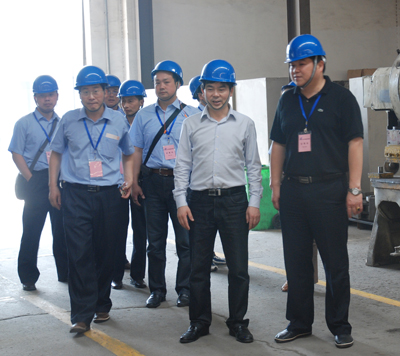 集團副總袁立華(右二)陪同蔣總(右一)一行參觀
