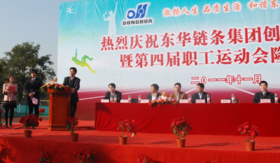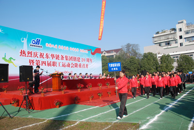11月27日,運河鎮(zhèn)亭址小學內彩旗飄揚,鑼鼓喧天,雖然已是初冬,但20度的高溫和暖和的陽光,仿佛讓人回到了春天,給在此慶祝東華集團創(chuàng)建20周年暨第四屆職工運動會的東華人增添了無窮的力量和喜慶的氣氛。董事長宣碧華、董事長助理張世強、副總經理袁立華等高層及部分員工、600余名運動員在此歡慶東華20華誕。