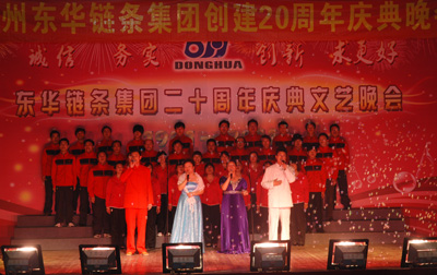 東華創(chuàng)建20年來(lái),我們從成長(zhǎng)走向成熟;從快速走向穩(wěn)健;從規(guī)模走向效益;從國(guó)內(nèi)走向國(guó)際,走向國(guó)際的時(shí)候,我們東華提出了新的目標(biāo),在全球我們要成為鏈傳動(dòng)第一的鏈條制造企業(yè)。我們?cè)瓉?lái)的定位是專(zhuān)業(yè)的、國(guó)際的、全球的第一,現(xiàn)在我們賦予第一新的定義,我想這個(gè)第一指的是我們的企業(yè)在全球同行業(yè)中最優(yōu)秀;產(chǎn)品在全球同行業(yè)中最有價(jià)值;員工在全球同行中最勤勞而有智慧;我們的品牌在全球同行中最誠(chéng)信可靠。在這個(gè)過(guò)程中,我們東華人首先是健康又蓬勃的,其次是活潑而又和諧的,再加上勤勞而智慧的,我相信,我們東華人共同努力,肯定能達(dá)到這樣的目標(biāo),而且能實(shí)現(xiàn)這樣的目標(biāo)。今天,我們歡聚在這里,要感謝余杭區(qū)文化館的同志們給我們的支持以及運(yùn)河鎮(zhèn)文體活動(dòng)中心給我們的支持。在此,祝晚會(huì)取得圓滿(mǎn)成功,同時(shí)祝演出人員取得演出成功,祝在座所有觀摩的東華員工有個(gè)好心情。