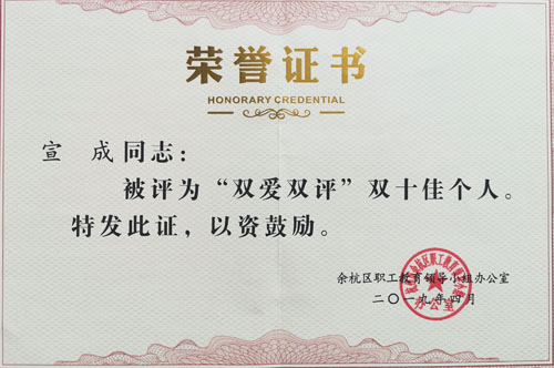 副董事長宣成被授予“雙愛雙評(píng)”雙十佳個(gè)人稱號(hào)