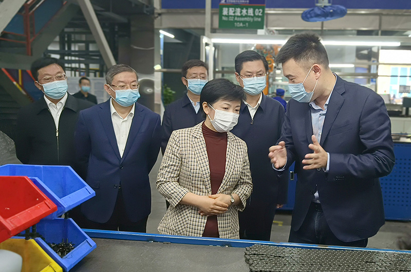 日前,泰州市委副書(shū)記、市長(zhǎng)萬(wàn)聞華,泰州市政府秘書(shū)長(zhǎng)錢(qián)忠,興化市市長(zhǎng)殷俊,興化開(kāi)發(fā)區(qū)黨工委書(shū)記劉鋒一行到東華興化公司調(diào)研二期 “智改數(shù)轉(zhuǎn)” 項(xiàng)目及發(fā)展情況。公司董事長(zhǎng)宣成、興化公司總經(jīng)理廖杭州等熱情接待。