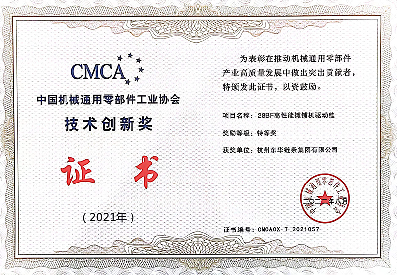 東華鏈條10項高端產(chǎn)品及裝備獲中國機(jī)械通用零部件行業(yè)技術(shù)創(chuàng)新獎