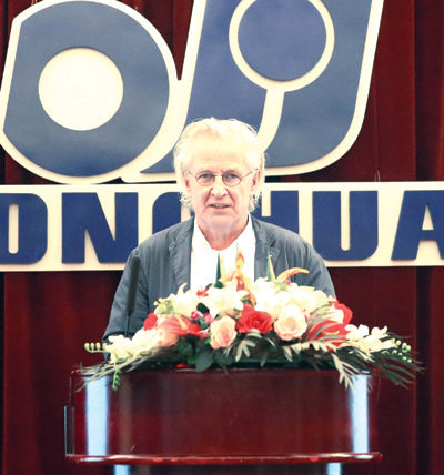 東華收購的德國KOBO公司總經(jīng)理Bovenkamp先生就全球化和一體化資源整合進(jìn)行了發(fā)言。