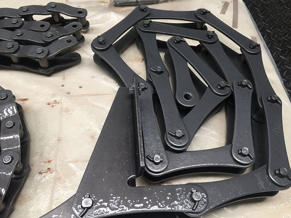 水處理設施中除污、刮泥等環(huán)節(jié)使用的鏈條:長節(jié)距不銹鋼輸送鏈、污泥收集器鏈條、污泥池驅(qū)動鏈等。