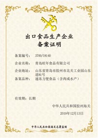 旺年堅(jiān)持以食品安全作為發(fā)展的基石,除通過ISO9001、HACCP等體系認(rèn)證外,還成為業(yè)內(nèi)為數(shù)不多具備出口食品生產(chǎn)資質(zhì)的企業(yè)之一,產(chǎn)品出口美國、加拿大等多個(gè)國家和地區(qū)。